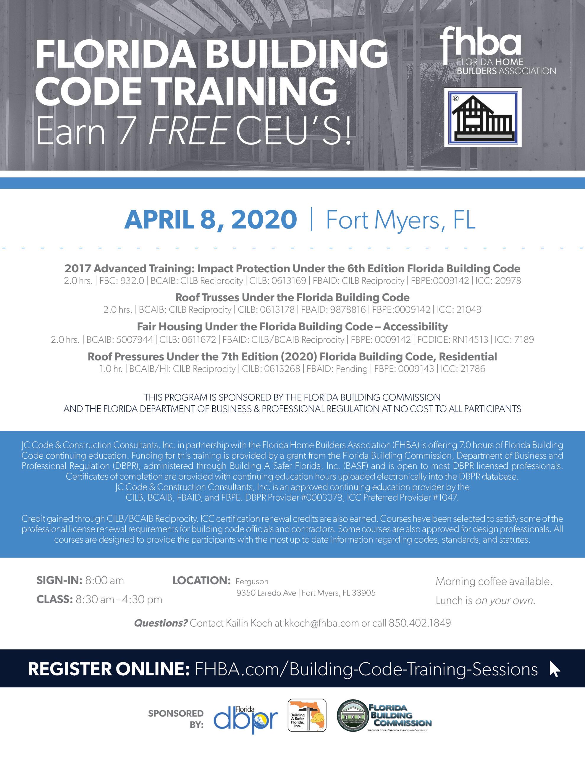 Building Code Training Flyer 2020 – Fort Myers